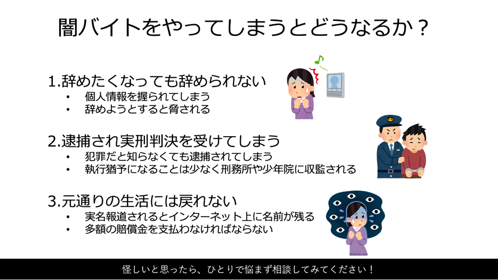 SNSやネットで見かけるバイトの中には、危険なヤミ(闇)バイトが隠れていることがあります。